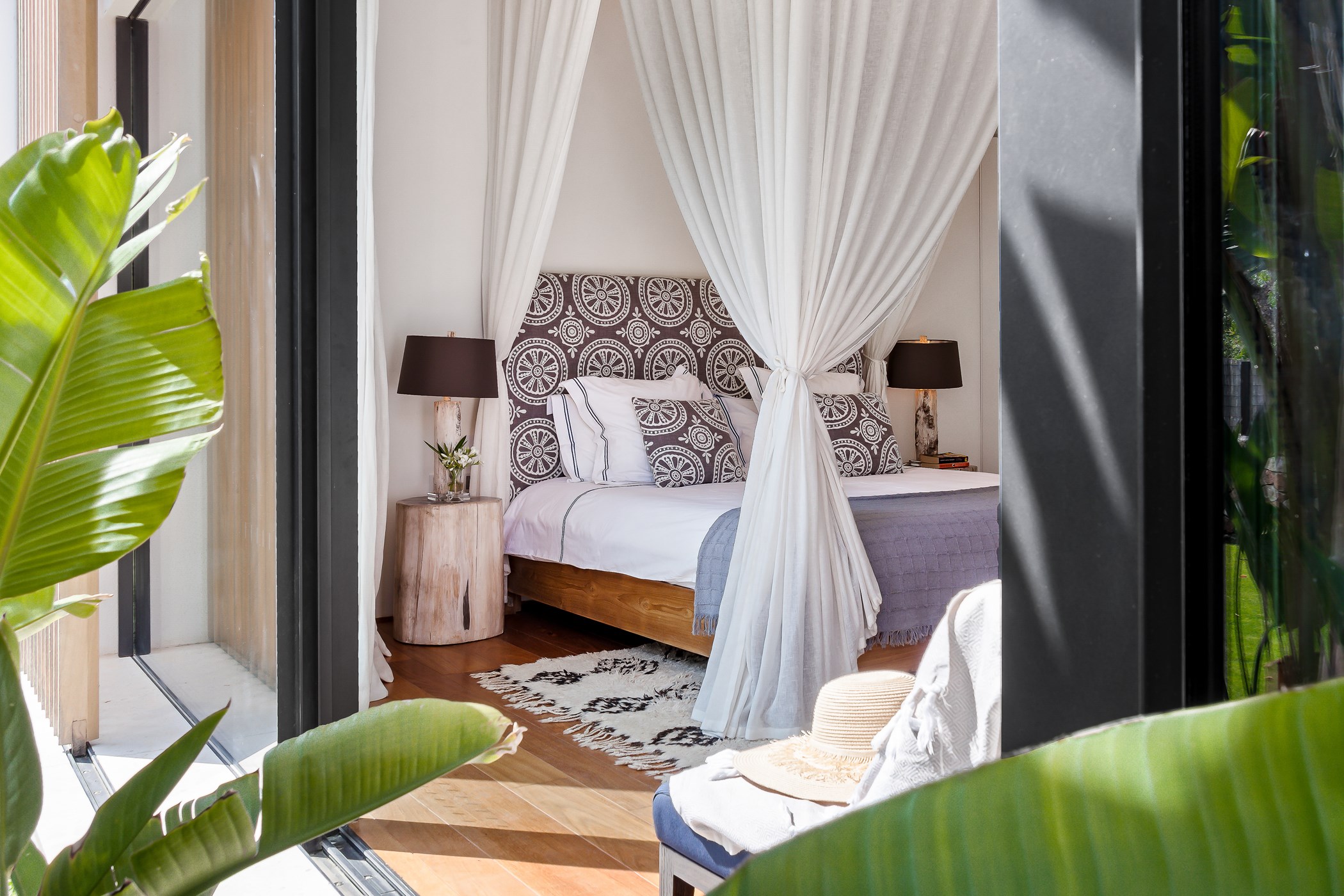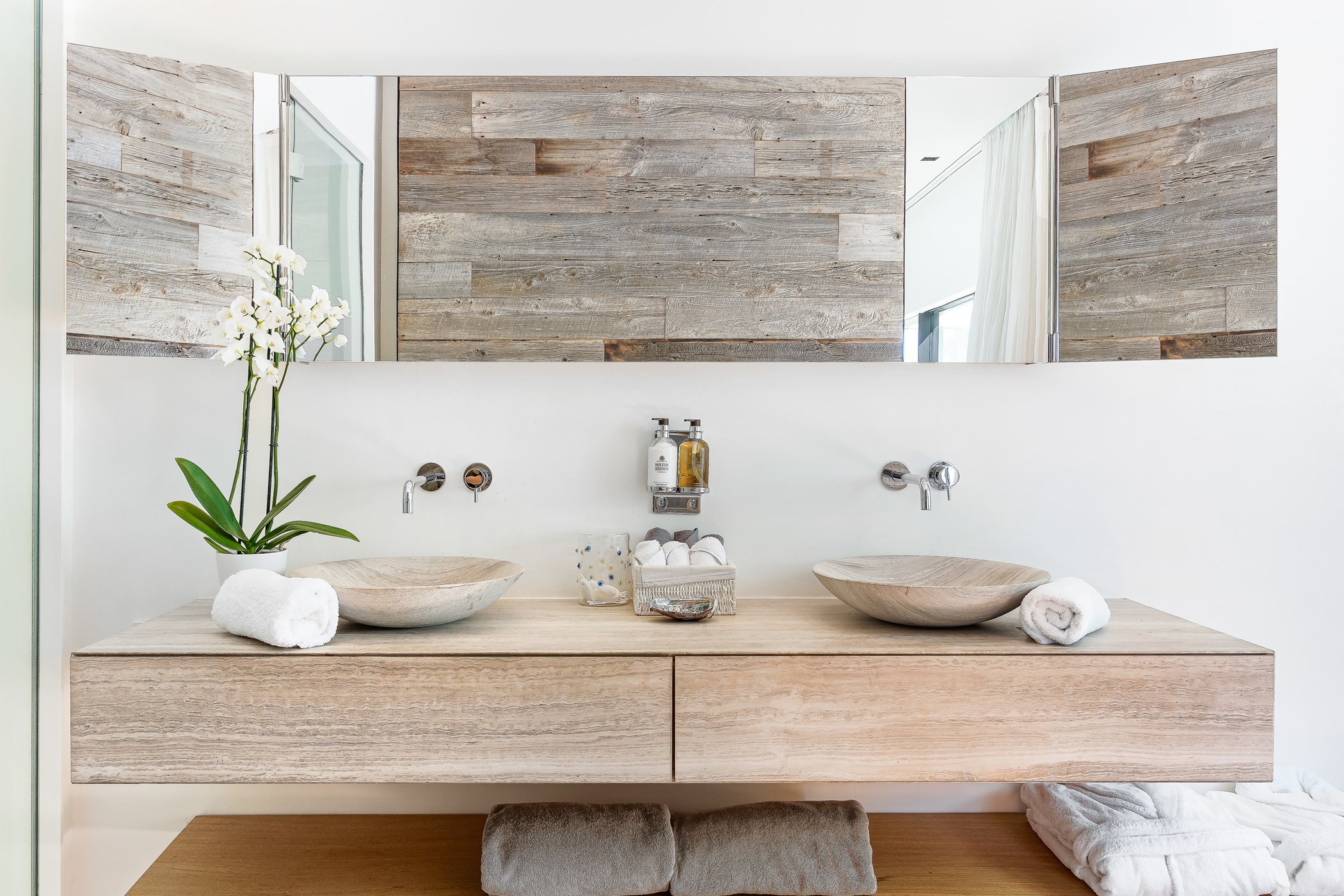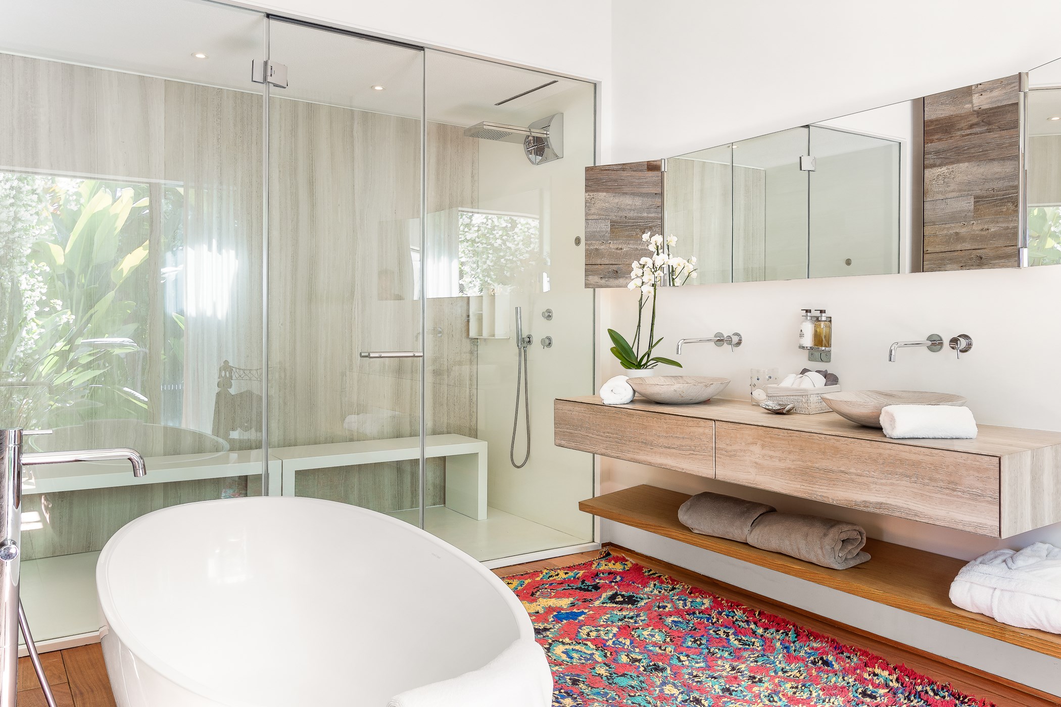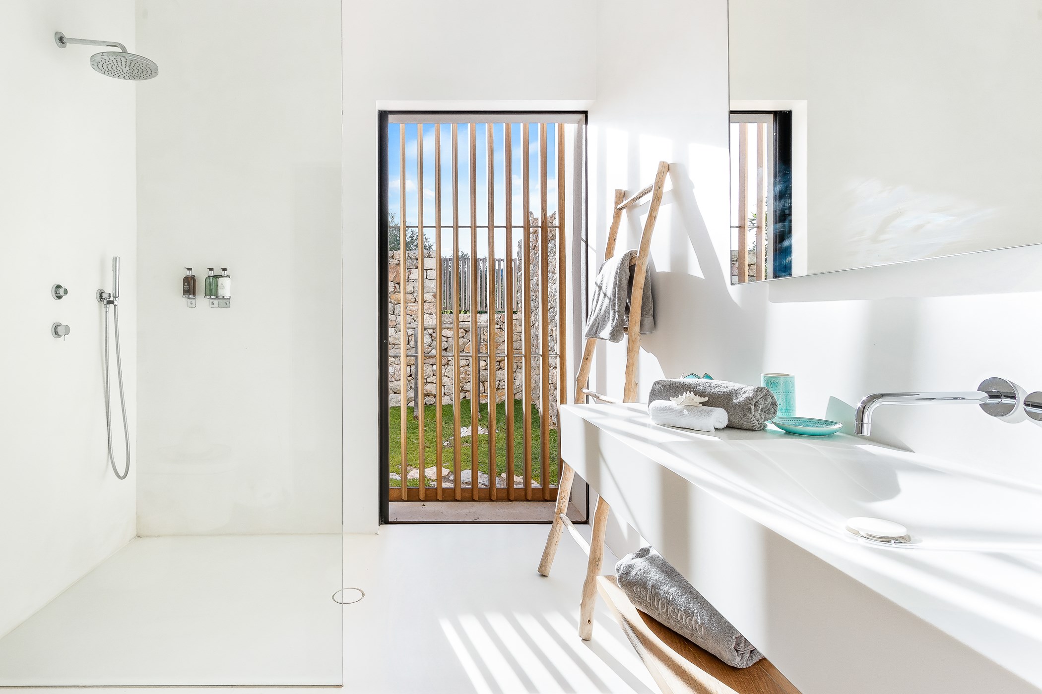 Inside, contemporary design meets natural warmth. Polished wood floors and sleek, modern furnishings create an inviting atmosphere, flooded with natural light. Each of the five en-suite bedrooms is uniquely styled with high-end finishes and organic materials. The master suite is a true sanctuary, featuring a shower, bathtub, hammam, and direct access to a private Jacuzzi and chill-out zone.