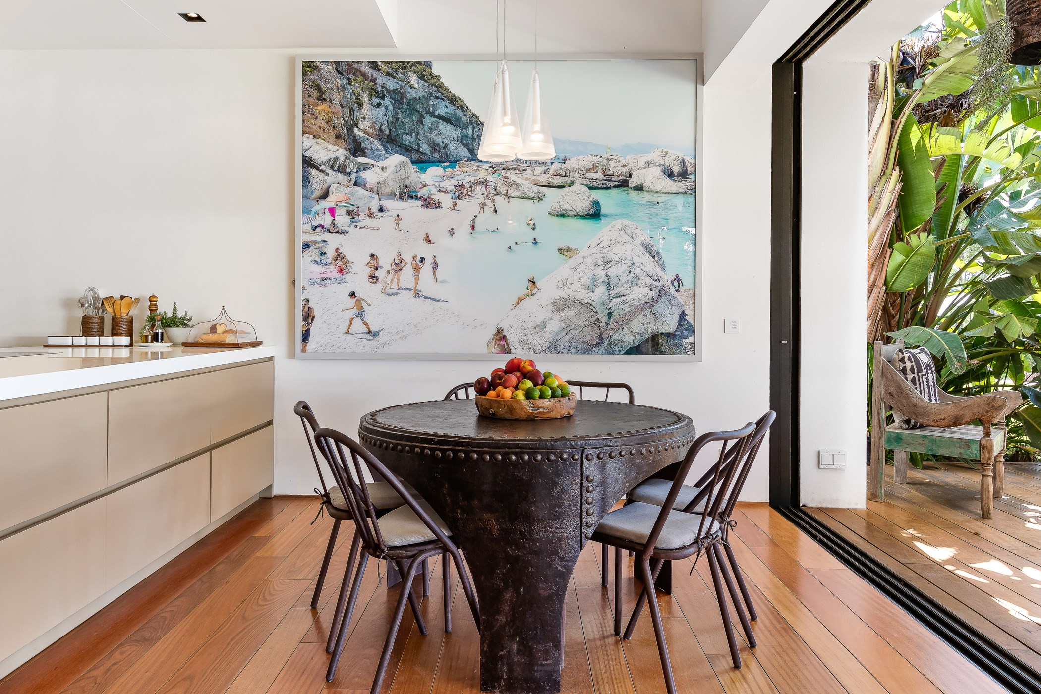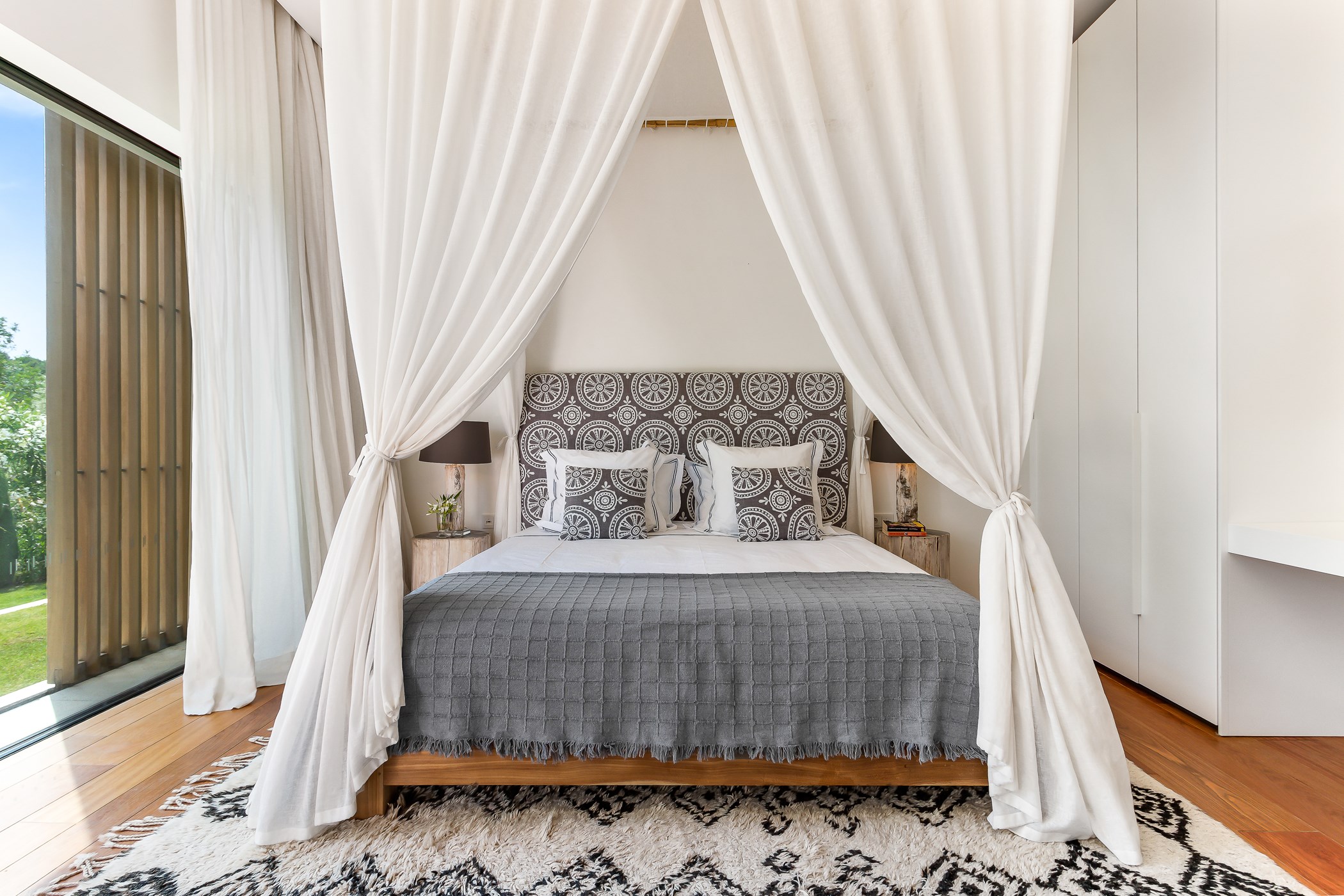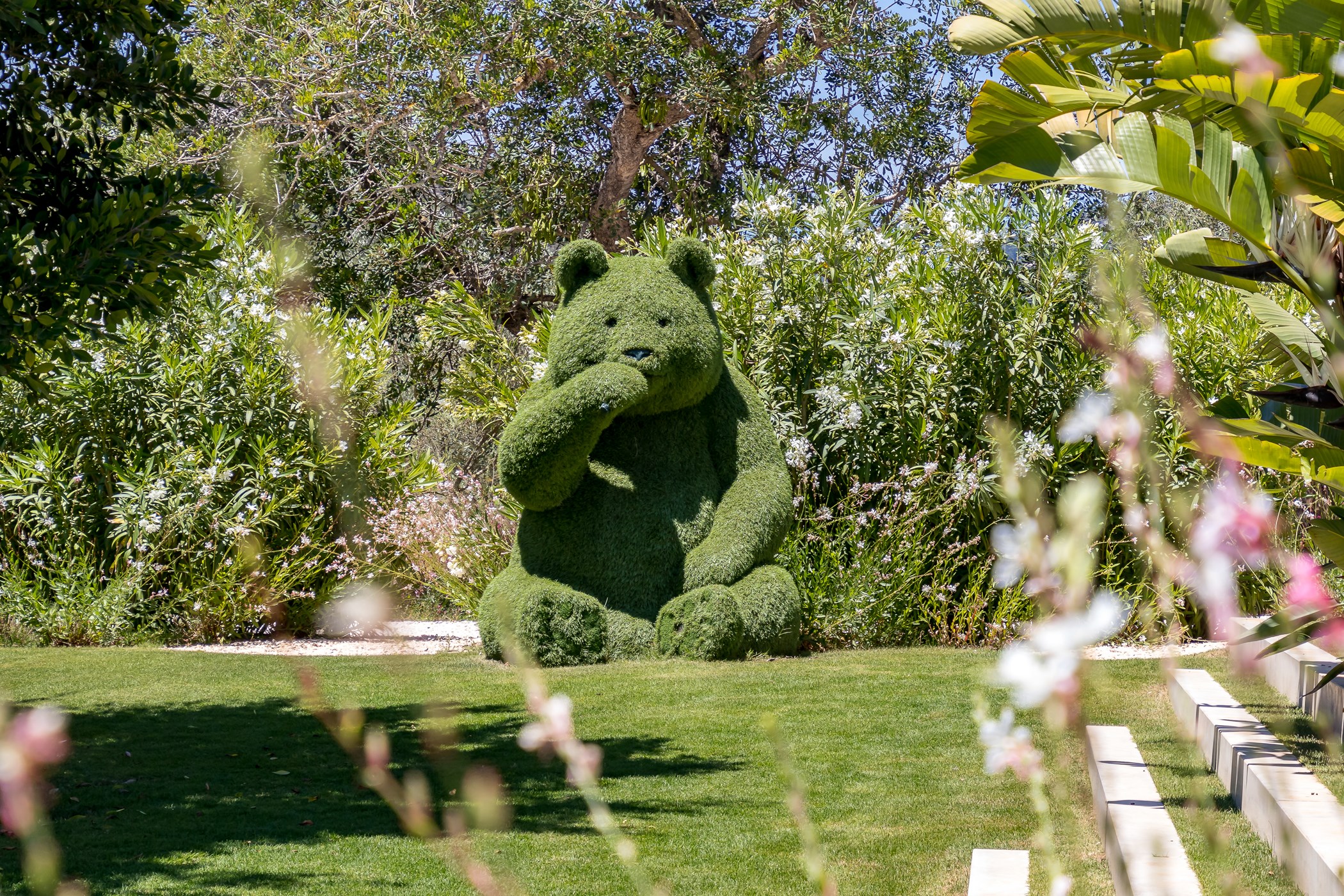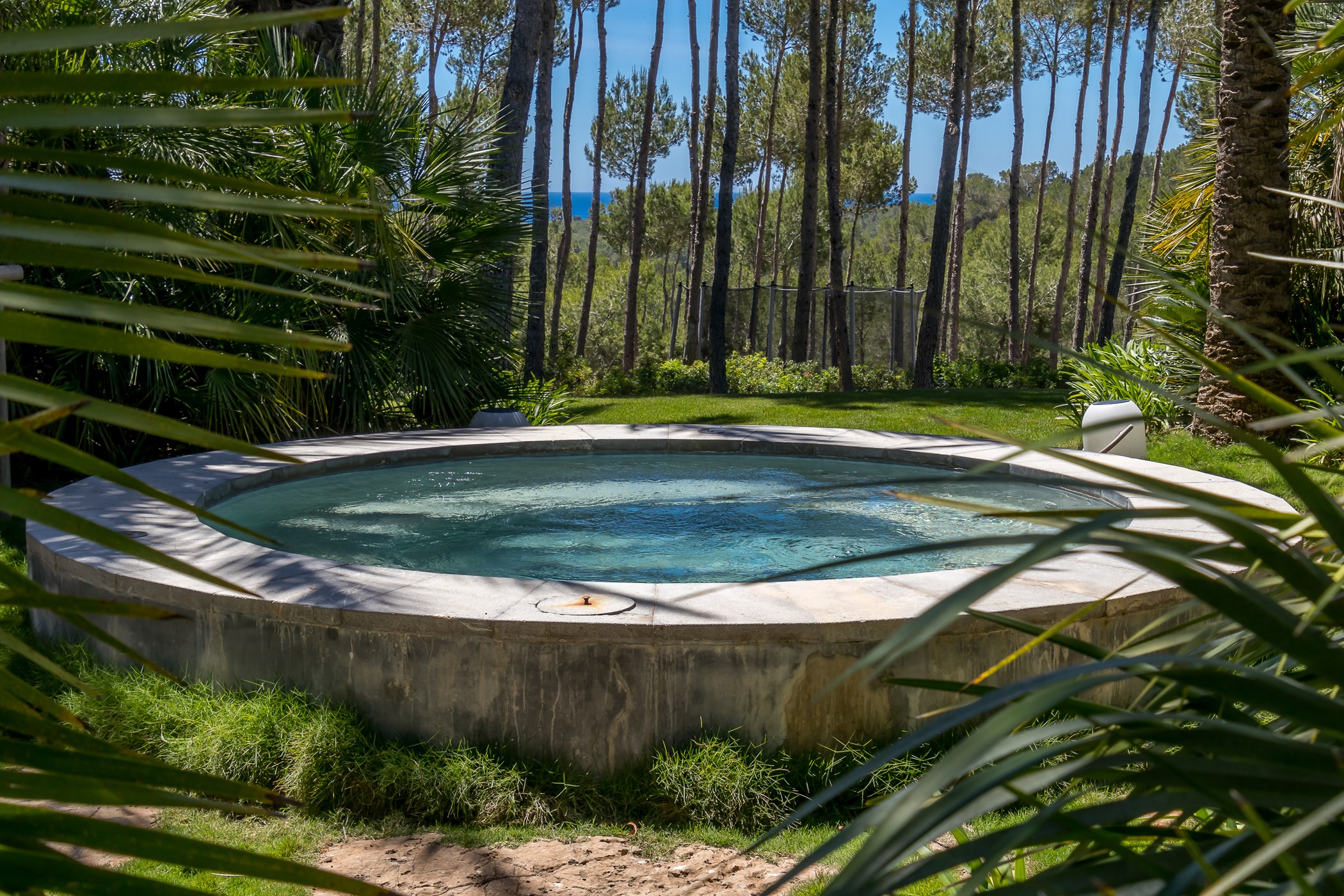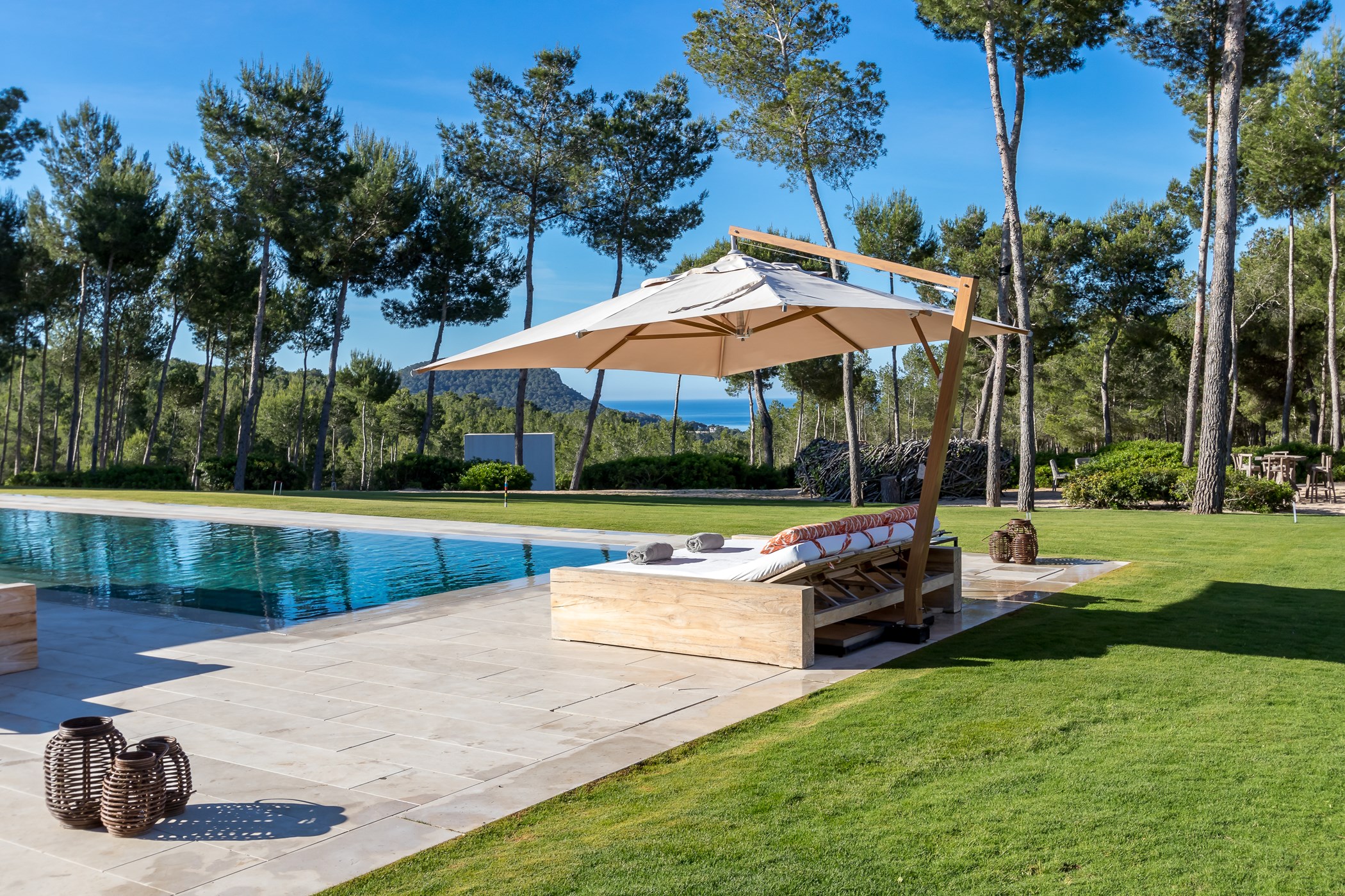 Set amidst swaying palms and fragrant pines, the villa’s landscaped grounds are equally impressive. At the heart is a striking infinity pool, surrounded by sculpted lawns and curated art installations. Highlights include a large Jacuzzi, pétanque court, and a custom-designed outdoor cinema.